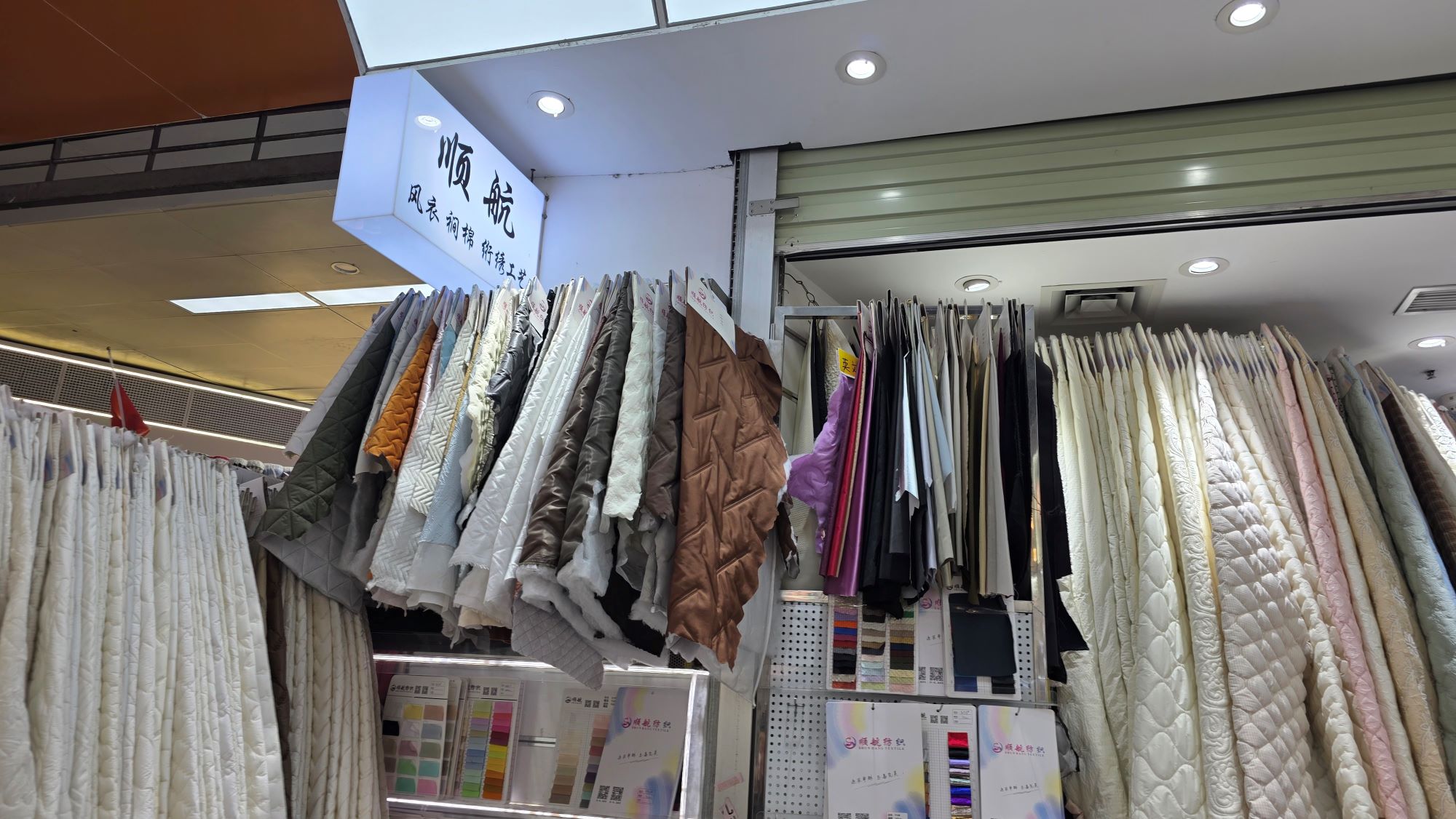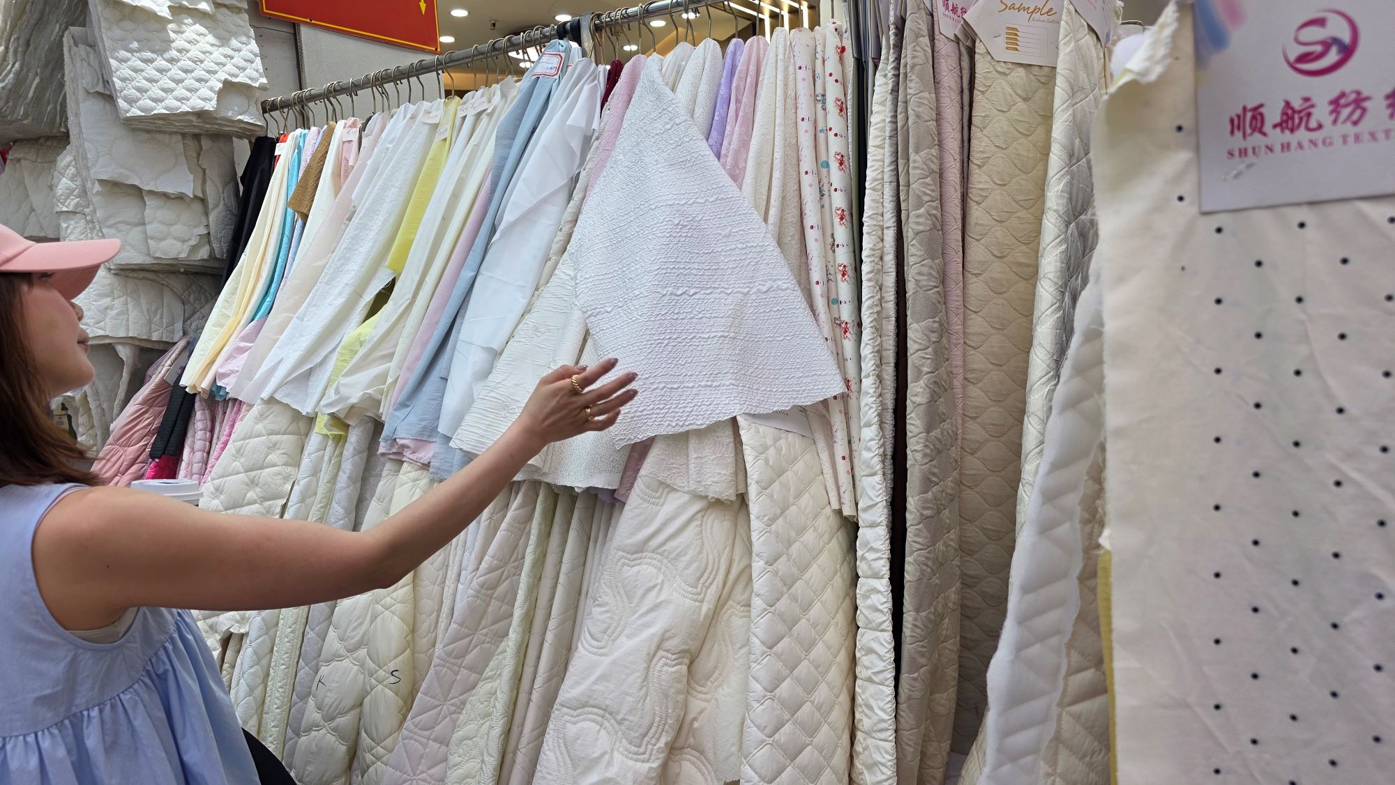 第一次来到中大市场的主理人夫妇,完全被这里庞大的规模震撼了。在如迷宫般的数万家档口中,我们顺利找到了春夏急需的清透压褶面料,以及秋冬备用的立体夹棉/绗缝面料。